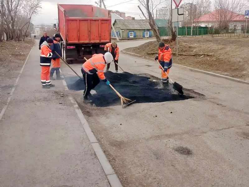 Литым асфальтом точечно устранены ямы на Лермонтова, Джамбула, Карла Маркса, Верхней Набережной, Советской, Красноказачьей, Вампилова, Старо-Кузьминской, Марата, Мира, Челнокова, Тельмана, Улан-Баторской, Пржевальского, в переулке Западном и микрорайоне Первомайском.