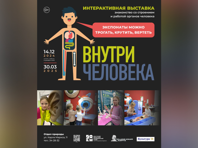 В отделе природы Иркутского областного краеведческого музея имени Н.Н. Муравьева-Амурского 14 декабря начнет работу интерактивная выставка «Внутри человека» (0+), сообщает «ИркСиб» во вторник, 10 декабря, со ссылкой на пресс-службу музея.