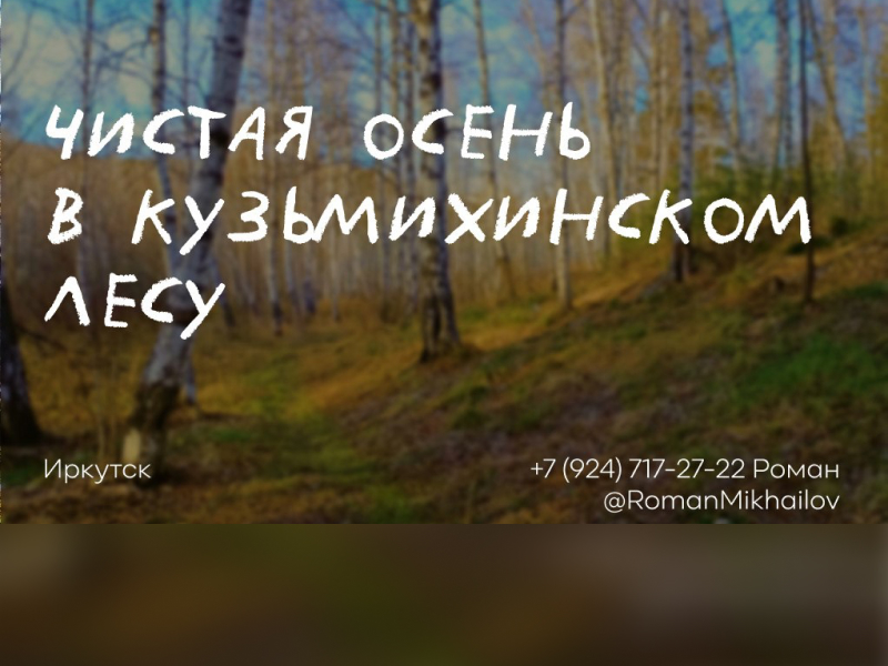 9 ноября в 11:00 в Иркутске пройдет арт-субботник «Чистая осень в Кузьмихинском лесу». Всех желающих приглашают принять в нем участие, сообщает «ИркСиб» со ссылкой на пресс-службу мэрии в четверг, 7 ноября.