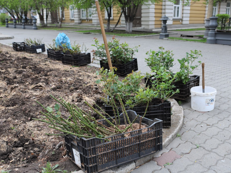 Всего в скверах и парках Иркутска до начала лета посадят более 1,7 тысячи кустов роз. На зиму их обрежут и укроют опилками.