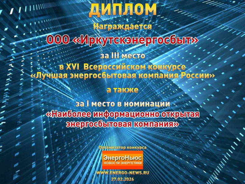 Конкурс организован изданием «ЭнергоНьюс», в 2025 году в нем пиняли участие 42 энергосбытовые компании со всей страны. «Иркутскэнергосбыт» вошел в число призёров сразу в двух наиважнейших категориях.