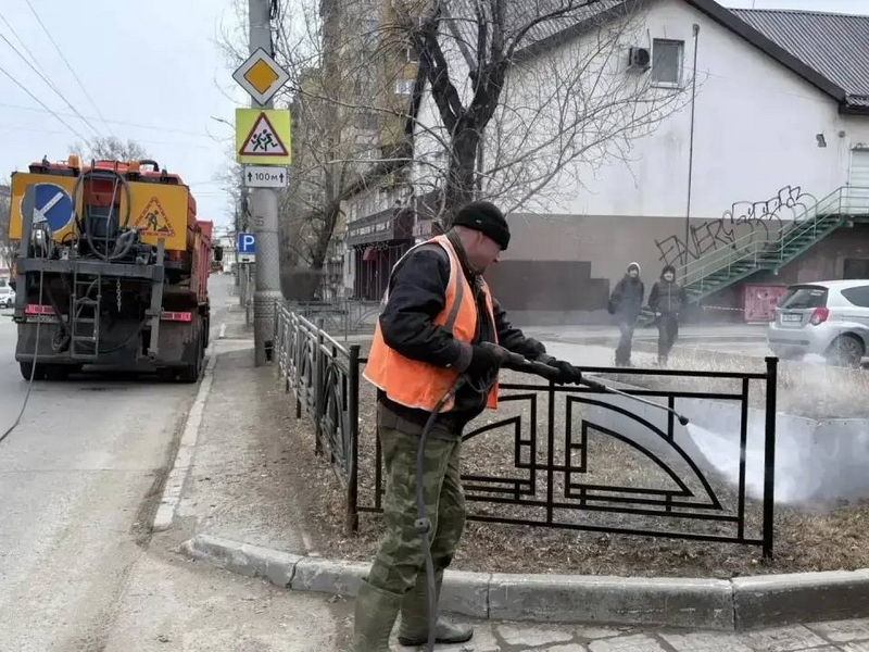 Подрядчики вручную очищают тротуары, дорожные лотки, остановки и газоны. В разных районах города моют ограждения, сообщает «ИркСиб» со ссылкой на пресс-службу мэрии в воскресенье, 12 апреля.