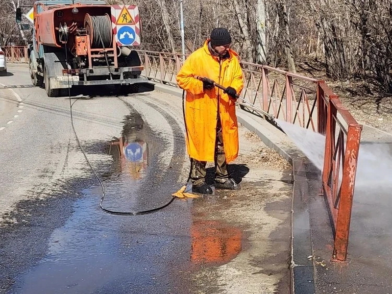 На мостах и путепроводах тоже моют ограждения. Содержанием таких объектов занимается МУП «Служба эксплуатации мостов». Кроме того, на них регулярно проводят уборку пешеходных зон и лестниц.