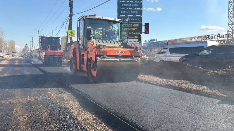 До начала асфальтирования был уложен геотекстиль, затем проведена отсыпка основания щебнем и уплотнение. Параллельно с устройством дорожного покрытия сейчас ведется восстановление бордюров и тротуаров.